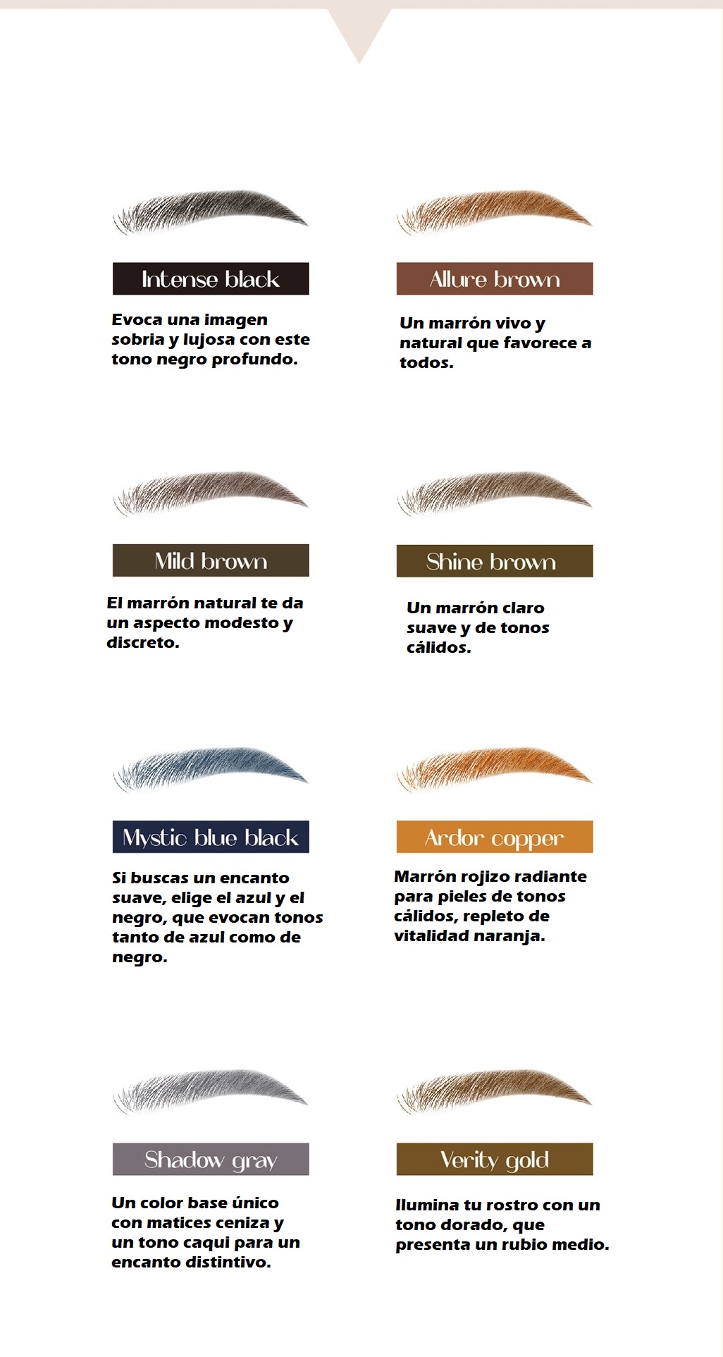 | COLOR | INTENSE BLACK, ALLURE BROWN, MILD BROWN, SHINE BROWN, MYSTICK BLUE BLACK, ARDOR COPPER, SHADOW GRAY, VERITY GOLD |